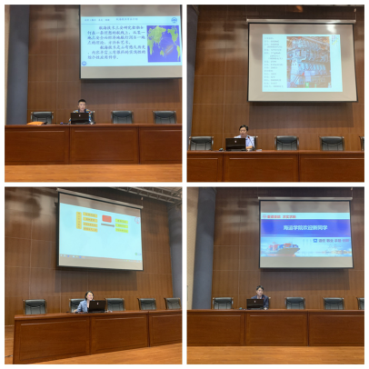 会上,学院硕士研究生企业导师杨炳栋老师以《智能航海的发展——海洋强国的创新之路》为题,紧扣创新发展,围绕E-航海MSP、智能船舶、航海新技术展望等维度开展了一堂智能航海创新教育课,勉励所有与会本硕新生要牢固树立创新意识,激发航海情怀,努力学习航海知识,力争为国家海运事业奉献青春、贡献力量。学院航海技术系主任张晓川老师介绍了航海技术发展传承的历史和近年来科研前沿方向,并解读了学院航海技术专业课程架构和培养方案;轮机工程系主任路恩起轮机长介绍了轮机工程专业的基本常识,从行业角度讲解了轮机专业从业人员的职业生涯规划;船舶电子电气工程系主任李荭娜老师介绍了专业培养目标和课程体系,展示了船电专业的师资队伍和科研教研成果,讲解了专业发展趋势和就业方向。教学秘书详细解读了《开云官方在线入口本科生学籍管理规定》等相关文件,重点剖析了学生学习中存在的常见误区。