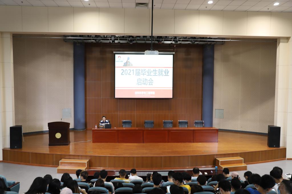 为使2021届毕业生尽早了解就业形势,帮助学生树立正确的就业观念,做好充足的求职准备和规划,材料科学与工程学院于近日在环安报告厅通过线上线下相结合的方式面向全体2021届毕业生召开就业工作启动会。学院相关负责同志、负责就业的辅导员共同参加此次活动。