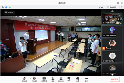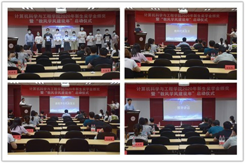 为表彰先进,选树典型,贯彻落实学校“教风学风建设年”要求,营造崇教尚学的良好氛围,6月9日下午,计算机科学与工程学院在8号楼208会议室成功举办2020年新生奖学金颁奖暨“教风学风建设年”启动仪式。学院主要负责同志、新生班主任代表、辅导员代表、获奖学生代表共30余人参加现场活动,2019级其余学生通过腾讯会议分会场线上参会。