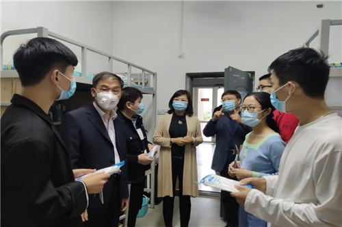 22日下午,学院负责同志带领辅导员以及网格员教师走访宿舍,慰问返校学生,询问返校后的学习状态以及就业情况。叮嘱同学们勤洗手、勤通风、少聚集,定期消杀。同时,建议大家养成良好卫生习惯,适当增加锻炼,提高防疫意识。网格员教师为学生耐心讲解进出校请假制度、图书馆如何预约等问题,以教师网格化管理模式,组织同学们做好通风消杀和健康状况“日报告、零报告”。