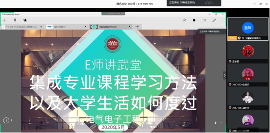 为切实保障学生在新冠肺炎疫情防控期间“停课不停学”,落实我校学风建设指导精神,日前,电气电子工程学院举办“E师讲武堂”,邀请十余名优秀校友与毕业生为同学们带来主题为“专业课学习方法以及大学生活如何度过”的线上交流会,师生代表共计200余人参与此次活动。