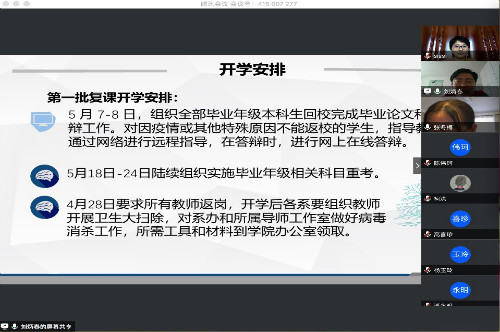为扎实做好师生返校疫情防控准备工作,提高防范和应急处理能力,保障全院师生的生命安全和身体健康,管理学院于4月24日至29日组织各系主任、硕士生导师、行政人员及全院教师分别召开返校复学工作培训会议。学院党委书记张冬梅、院长王京滨分别主持会议并就相关工作开展部署。
