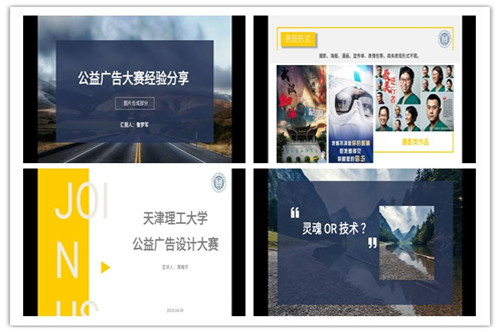 黄曦宇学长对广告大赛的要求和目的进行了详细的介绍,提出公益广告不是以盈利为目的而为社会提供免费服务的广告,并指出广告制作过程中分为5个步骤:确定表现形式、确定选题、明晰准备步骤、开始创作、沟通修改,以及拍摄地点,拍摄工具的选用;鲁梦军学姐则是针对平面海报中的前期准备、灵感挖掘、合成技巧三个部分进行了分享。