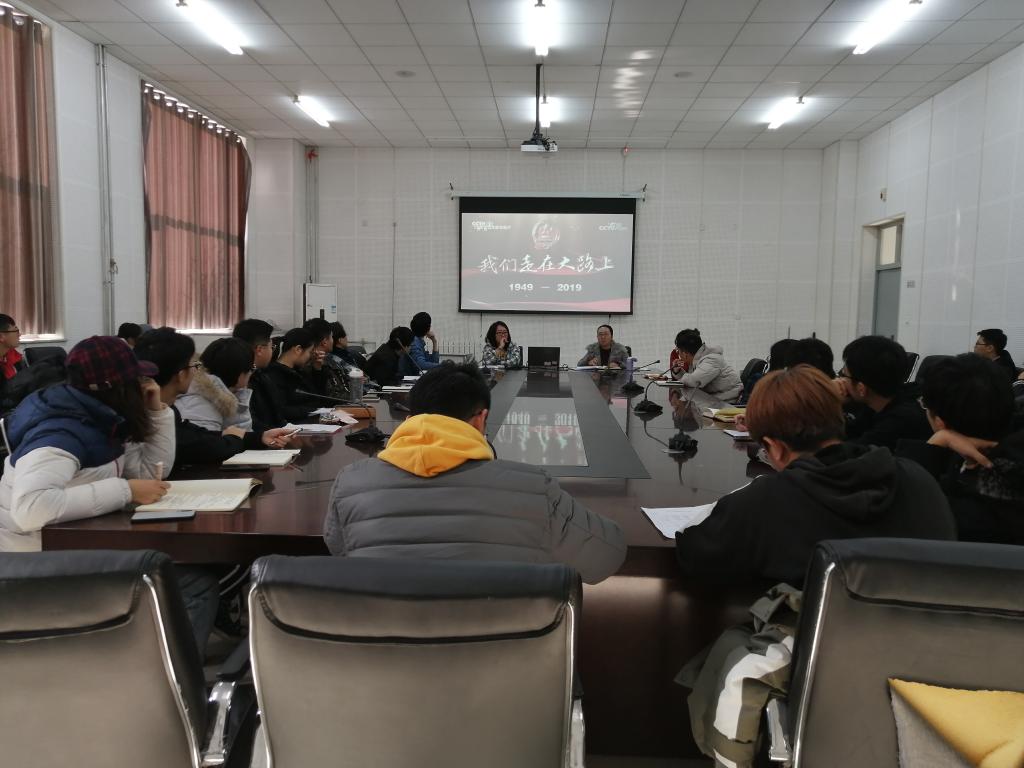 结合“不忘初心、牢记使命”主题教育,各基层师生党支部、团支部用多种多媒体方式集中观看了“伟大历程 辉煌成就——庆祝中华人民共和国成立70周年大型成就展”;作为宿舍文化活动之一,团委学生会组织团学骨干在宿舍活动室、学生宿舍中带头观看《此时此刻·2019年大阅兵》,再一次深刻感受到了祖国的恢弘大气,激发广大新时代青年对中华民族伟大复兴的“中国梦”的干劲。此外,学生工作队伍教师与团委学生学生干部共同观看、学习《我们走在大路上》、《教育强国》主题纪录片,并将通过召开高年级班会、低年级晚自习广泛宣传开展,通过网上观看、观后讨论的方式,让学生充分感受到70年来我国取得的历史性成就,进一步激发民族自豪感和使命感。大家纷纷表示将不忘初心,牢记使命,将爱国热情转化为学习和工作的热情,以更加昂扬的斗志与激情,努力拼搏奋进。