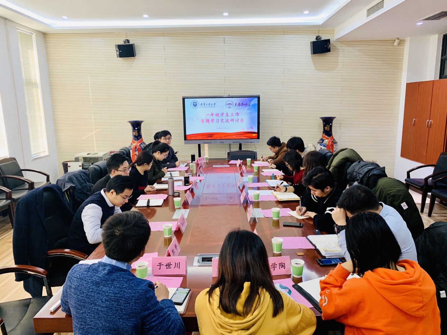 12月6日,我校一年级学生工作专项小组走进天津工业大学开展学访交流,与经济与管理学院、计算机科学与技术学院、纺织科学与工程学院三个学院辅导员围绕一年级学生工作深入开展交流。