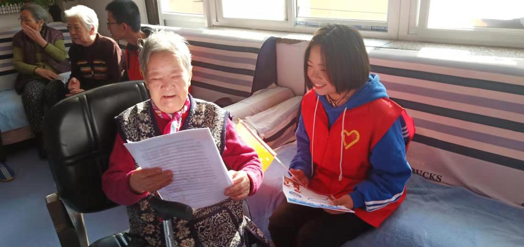 活动伊始,“萤火”服务队用心筹划了一场温馨的文艺演出,经典相声《武松打虎》为老人们送去欢声笑语;手语歌曲《童年》穿越时光轨道,带领听力障碍的老人感受关爱与温暖,回忆青春岁月的美好;手语操《国家》、合唱《我和我的祖国》饱含着浓浓的爱国情怀,将几辈中国人的爱国深情用歌声高唱。与此同时,“萤火”服务队向老人们普及宪法知识,并结合事实案例为老人们甄别诈骗手段,提高老年人的维权意识和防骗意识,为老人们提供更全方面优质的志愿服务,赢得了敬老院老人与工作人员的称赞。