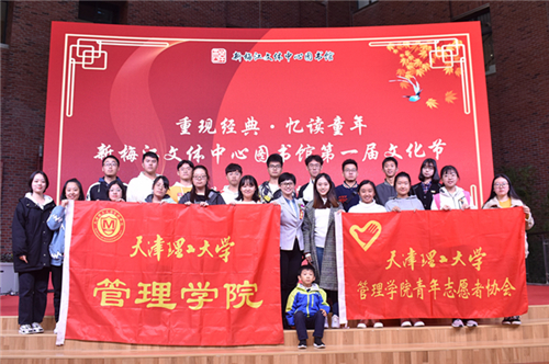 为响应习近平总书记“要提倡多读书,建设书香社会”的号召,引导全民阅读,增强文化自信,10月26日至27日,天津市新梅江文体中心图书馆举办第一届西岸文化节。文化节启动仪式当日,管理学院党委副书记王天耀和辅导员回冰然老师带领学院青年志愿者协会二十名同学参加此次活动。