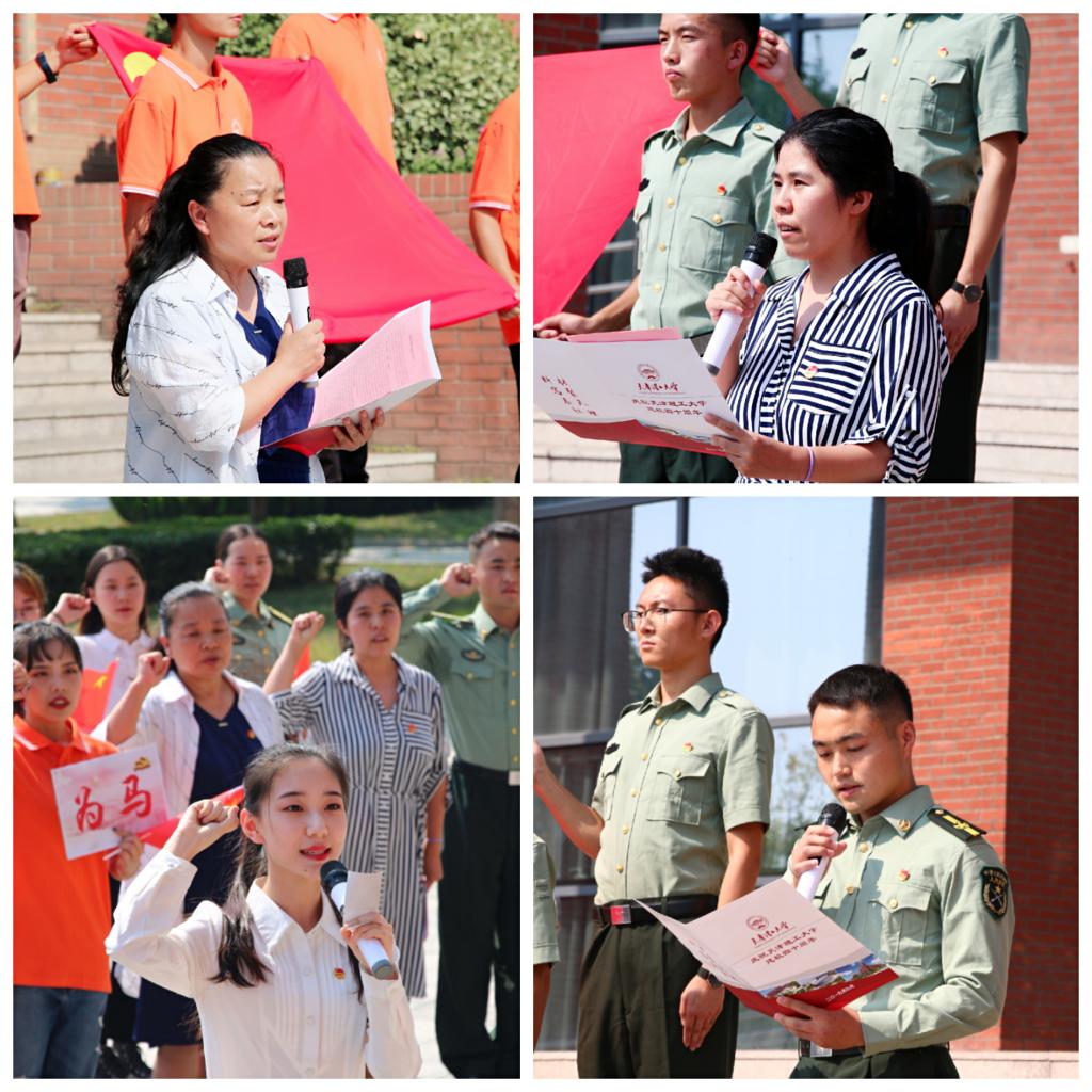 活动在嘹亮的国歌声中拉开帷幕,紧接着材料学院2017级材料物理专业退伍军人彭勇讲述了他在学期间投笔从戎,选择了条件最艰苦的西藏地区驻守,让青春之花开在祖国最需要的地方的故事。当几位退伍军人代表依次上台敬礼,高喊出“为国效忠,青春无悔”的铮铮誓言时,在场老师同学无不饱含流水。