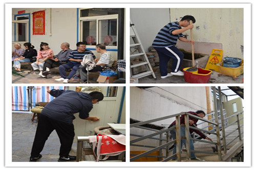 到达养老院后,志愿者与工作人员进行了简单的沟通与交流,在获知具体任务和领取工具后,大家撸起袖子卖力的地干了起来,擦窗户、除草、清洗地板、打扫餐厅,忙的不亦乐乎。除此之外志愿者们还坐在老人们中间,与她们进行“心与心”的交流。通过短暂的交谈,志愿者了解到这些慈祥和蔼的老人们曾伴随新中国的成长历程努力奋斗了一生,时至今日,他们理所应当得到更多的关心与爱护。