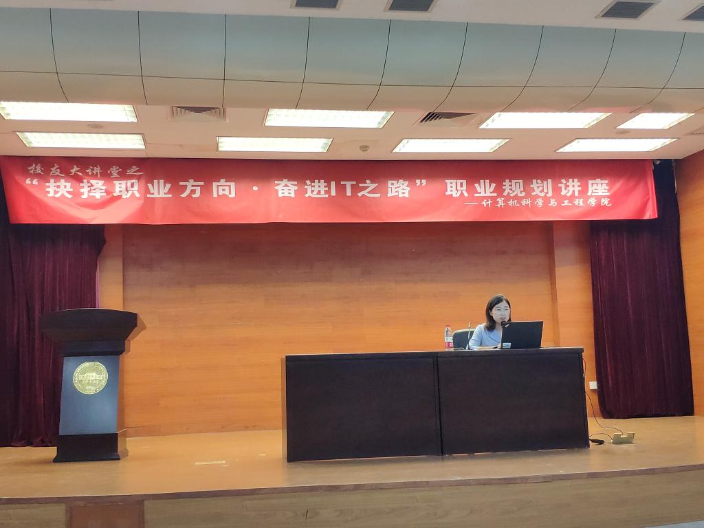 为持续推动校友工作,积极营造建校40周年校园文化氛围,充分发挥榜样引领作用,近日,计算机科学与工程学院成功举办校友大讲堂之“抉择职业方向,奋进IT之路”职业规划讲座。此次活动邀请到2010级信息安全专业毕业生刘珊返校作报告。学院相关负责人、辅导员及学生代表参加了本次活动。
