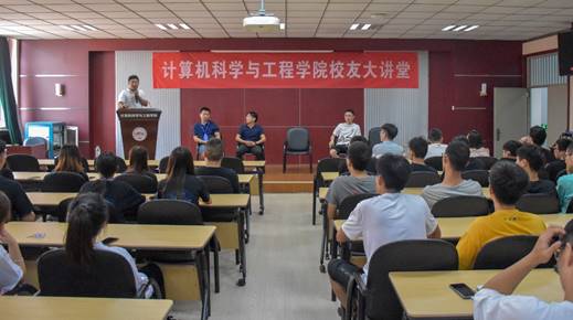 为纪念建校40周年,计算机科学与工程学院近日邀请各届校友回家并开展纪念活动,此次校友大讲堂特邀学院创新实践中心的五位优秀校友代表张剑、王东、王正、白凡、高彪,为在校大二大三的学弟学妹们分享成功经验和职场心得。