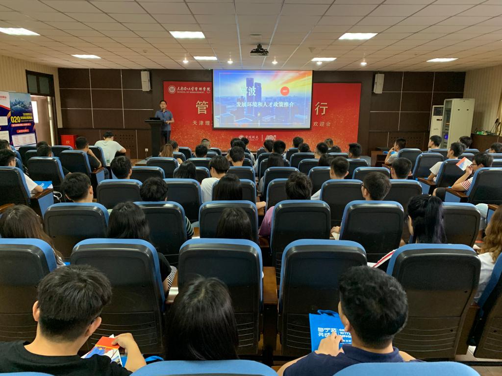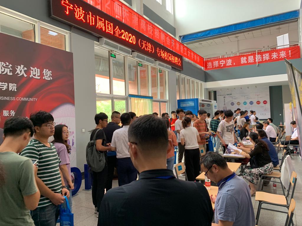 招聘会开始,首先由宁波市驻天津人才联络服务处处长张旭军介绍宁波市的人才引进政策和各项帮扶优惠条件,随后各招聘单位与有意向的同学展开一对一的沟通交流与现场面试,应聘同学也手持简历与招聘人员积极沟通,主动了解企业单位的情况。招聘会场气氛热烈,秩序井然,达到了预期效果。