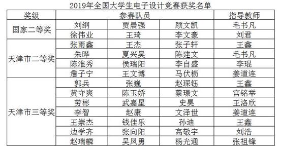 近日,在2019年全国大学生电子设计竞赛中,我校参赛队伍荣获全国二等奖2项,天津市二等奖4项,三等奖7项。成绩位列市属高校前列。