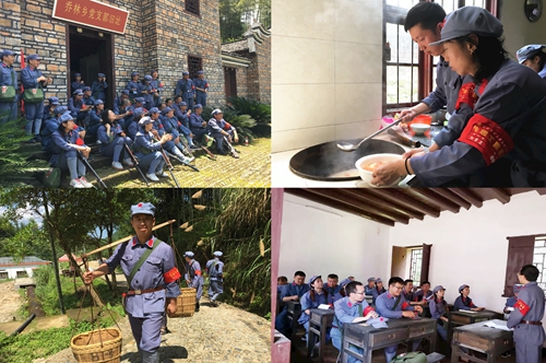 本次培训依托团中央井冈山教育基地进行,课程内容涵盖情景教学、专题教学、仪式教学、现场教学、体验教学、互动教学等多种形式,通过理论结合实践,将革命传统教育和理想信念教育融入每一天的行程中。在黄洋界哨口、茨坪革命旧址群、大井朱毛旧居、井冈山革命博物馆、小井红军医院、小井烈士墓、八角楼等现场教学点,学员们立身于一部部历史活教材之中,全方位感受着当年红军艰苦卓绝的奋斗历程、革命先烈视死如归的忠贞不屈和共产党员依靠群众、勇于胜利的革命乐观主义精神。体验教学环节中,各班级在湘赣边界第一个农村党支部——乔林乡党支部旧址建立临时党支部,组织开展入村入户调研、帮助村民干农活、自做红军餐等活动,结合实际思考国家扶贫开发的战略部署,深刻体会党支部的战斗堡垒作用。在庄严肃穆的井冈山革命烈士陵园,全体学员向井冈英烈敬献花圈,聆听感人至深的革命故事,深切缅怀革命先烈的丰功伟绩。
