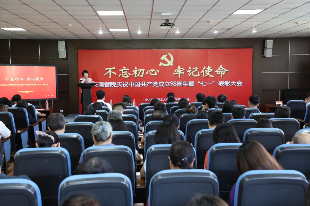 院党委纪检委员、副院长杨强同志宣读《表彰决定》。经过基层党支部逐级评选、推荐,学院党委决定,在庆祝建党98周年之际,对管理学院2018-2019年度4个先进基层党支部、15名优秀共产党员和11名党员先锋岗予以表彰。