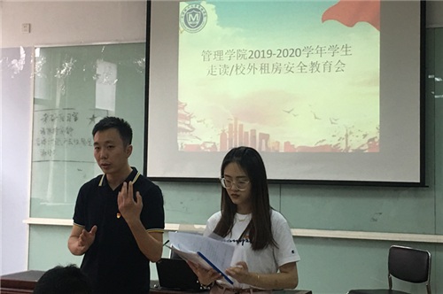 为贯彻落实我校关于学生安全工作的相关要求,进一步加强对走读和校外租房学生的教育和管理,提高学生安全防范意识,管理学院组织召开了安全教育会。