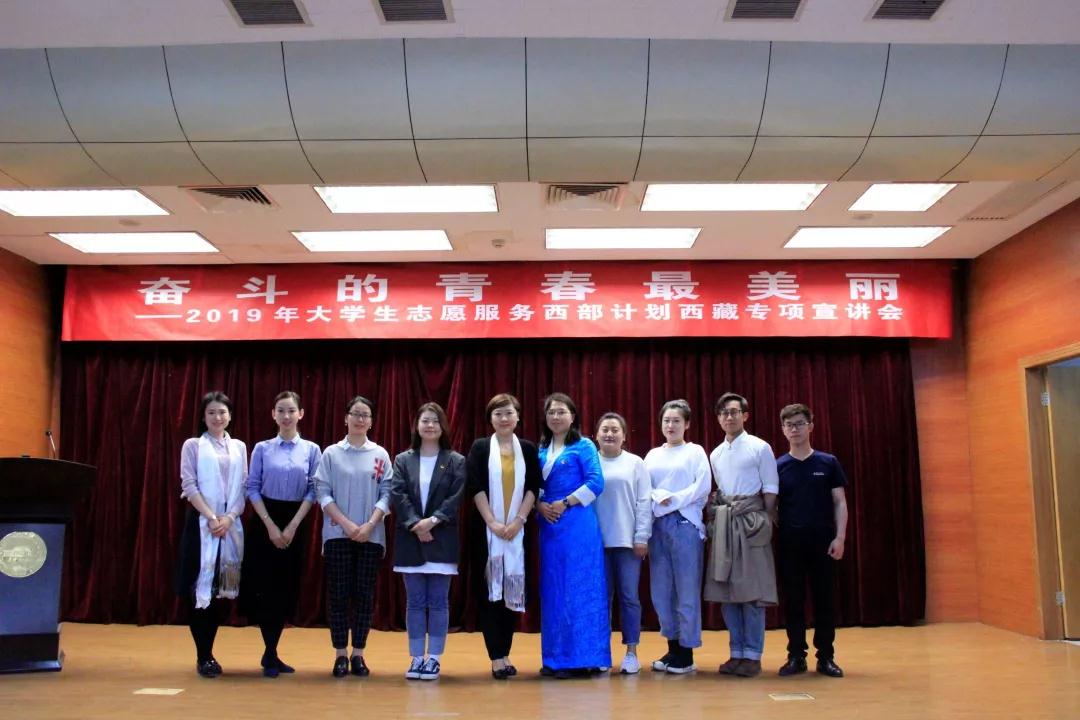5月7日下午,2019年大学生志愿服务西部计划西藏专项宣讲会在理学院报告厅举行,来自西藏自治区的西部计划优秀志愿者们向天理师生分享了他们作为志愿者扎根西藏、服务基层、奉献青春的宝贵经历。大学生志愿服务西部计划西藏专项宣讲团团长、西藏自治区团那曲市委副书记何晓娟,宣讲团秘书长、西藏自治区团阿里地委基层组织建设部部长索朗白姆,优秀青年志愿者、校团委全体成员出席宣讲会,200余名应届毕业生代表积极踊跃参与其中,反响热烈。