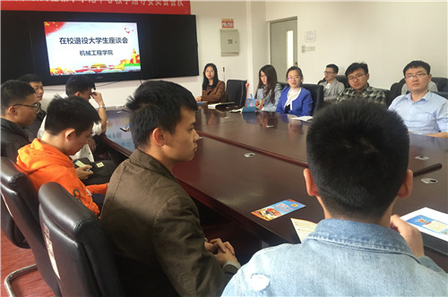为有力推动我校大学生征兵工作的发展,充分发挥退伍军人的模范引领作用,更好地在大学生群体中传播家国责任感,4月26日,机械工程学院在15-303召开在校退役大学生座谈会。辅导员、退役在校大学生参加了此次座谈会。