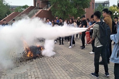 石伟利结合高校火灾真实案例讲解校园防火的重要性,并对宿舍和实验室安全知识、火灾预防常识进行详细讲解。要求同学们树立消防安全意识,不使用劣质电器和违禁电器,面对火灾一定要冷静、镇定、不慌乱,采取正确的自救、求救措施。随后,石老师讲解了有关火灾现场的应急处置方案,灭火器和消防栓的使用方法以及相关的注意事项。在消防演习中,石老师带领学生用灭火器进行灭火,火情最终被控制。整个演习指令明确科学、行动迅速有序、人员配合顺畅,收到了良好效果。学生梅可表示,此次活动让自己对消防常识有了深刻的认识,意识到消防安全对于工作生活的重要性,在今后的学习生活中一定会遵循消防规范,保障自己与集体的安全。