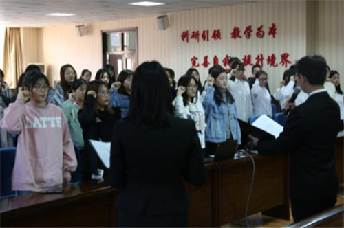 随后,主持人带领全体同学郑重宣誓:“我愿意成为雷锋精神的践行者,大力弘扬雷锋精神,从自己做起、从身边小事做起,坚持“爱国守法、明礼诚信、团结友善、勤俭自强、敬业奉献”的道德准则,在服务社会、报效祖国的实践中不断做出新的贡献。”铿锵有力的声音响彻报告厅,坚定的眼神彰显天理管院学子的决心。