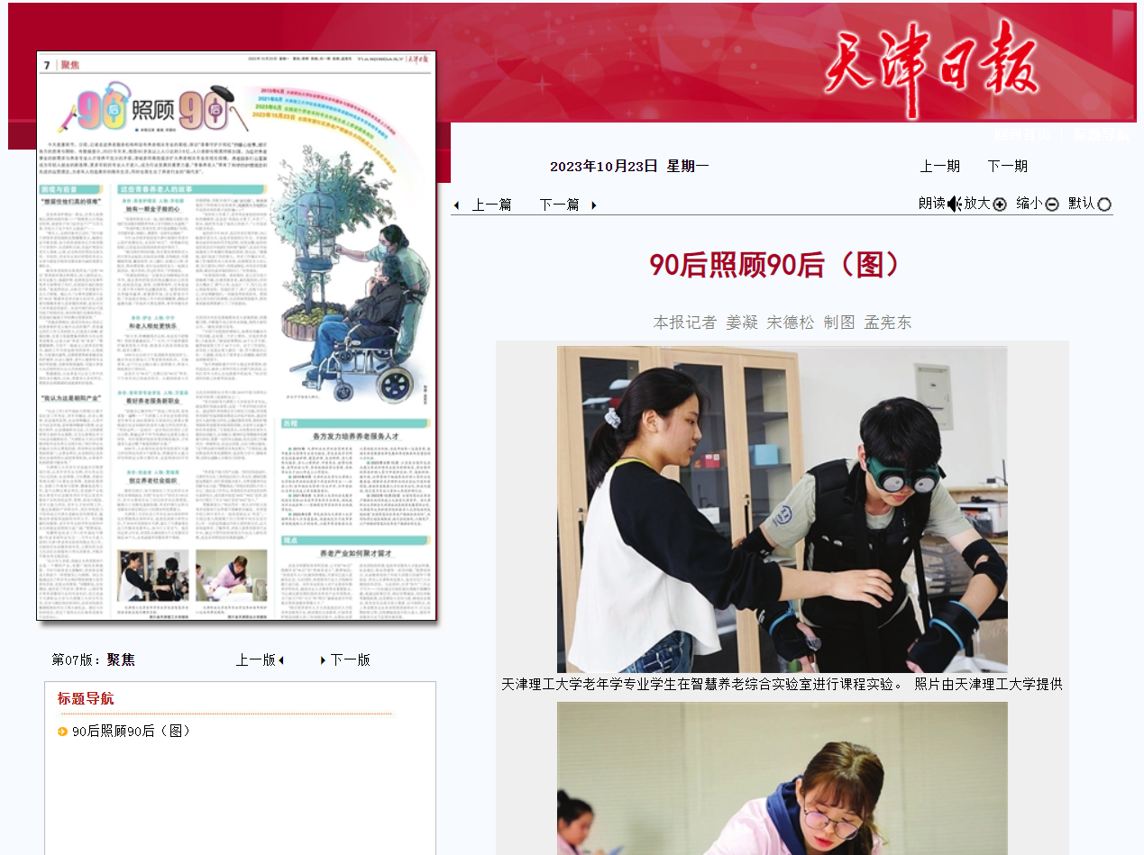 10月23日,《天津日报》报道我校社会发展学院老年学专业建设,培养养老专业人才,助力养老产业发展。全文如下: