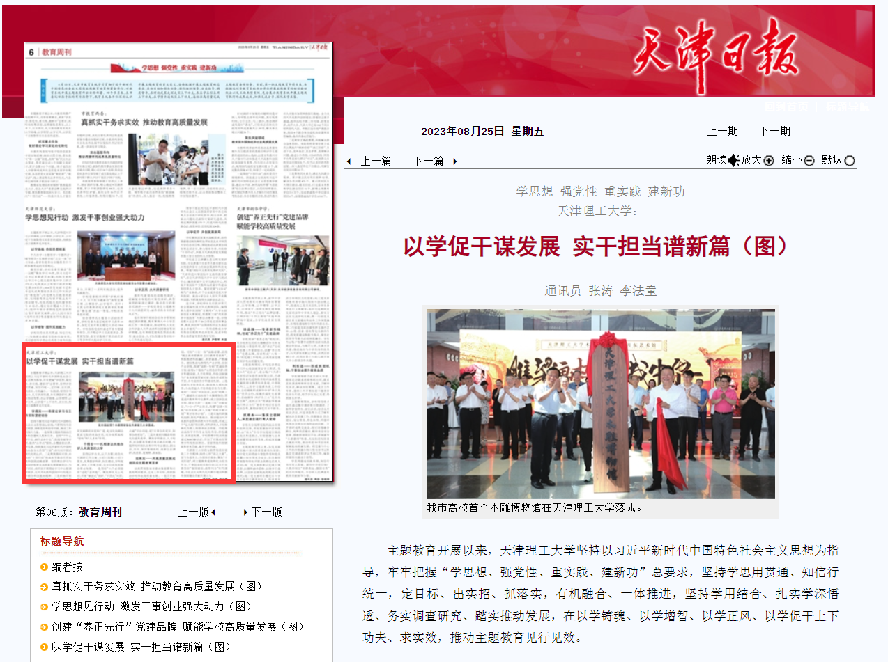 8月25日,《天津日报》以“以学促干谋发展 实干担当谱新篇”为题报道我校主题教育经验做法,全文如下:
