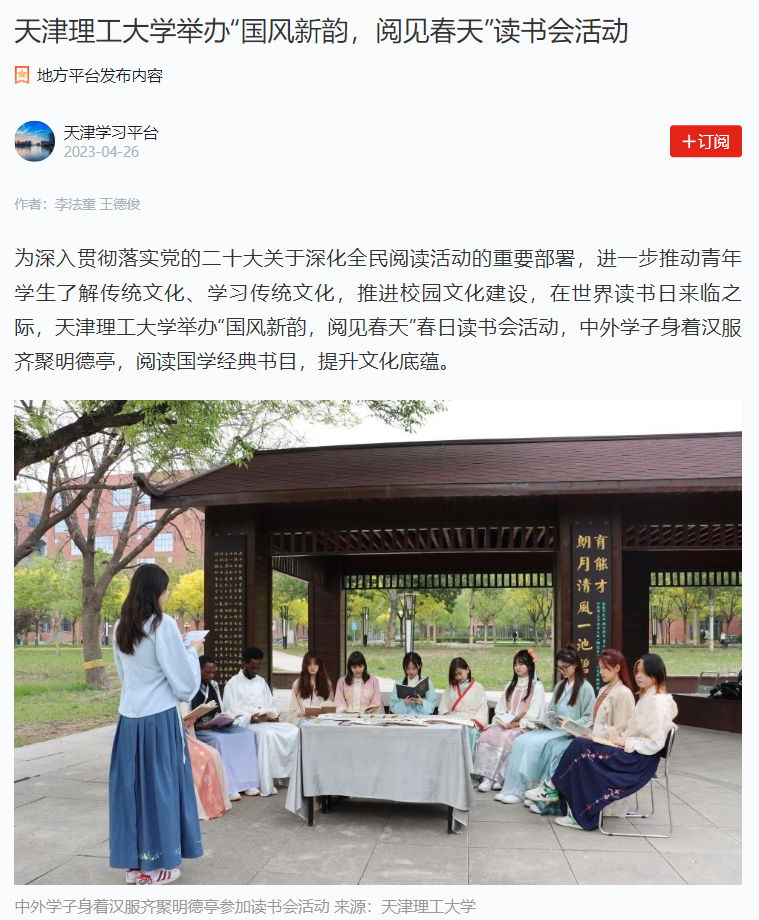 中外学子身着汉服齐聚明德亭参加读书会活动 来源:开云官方在线入口