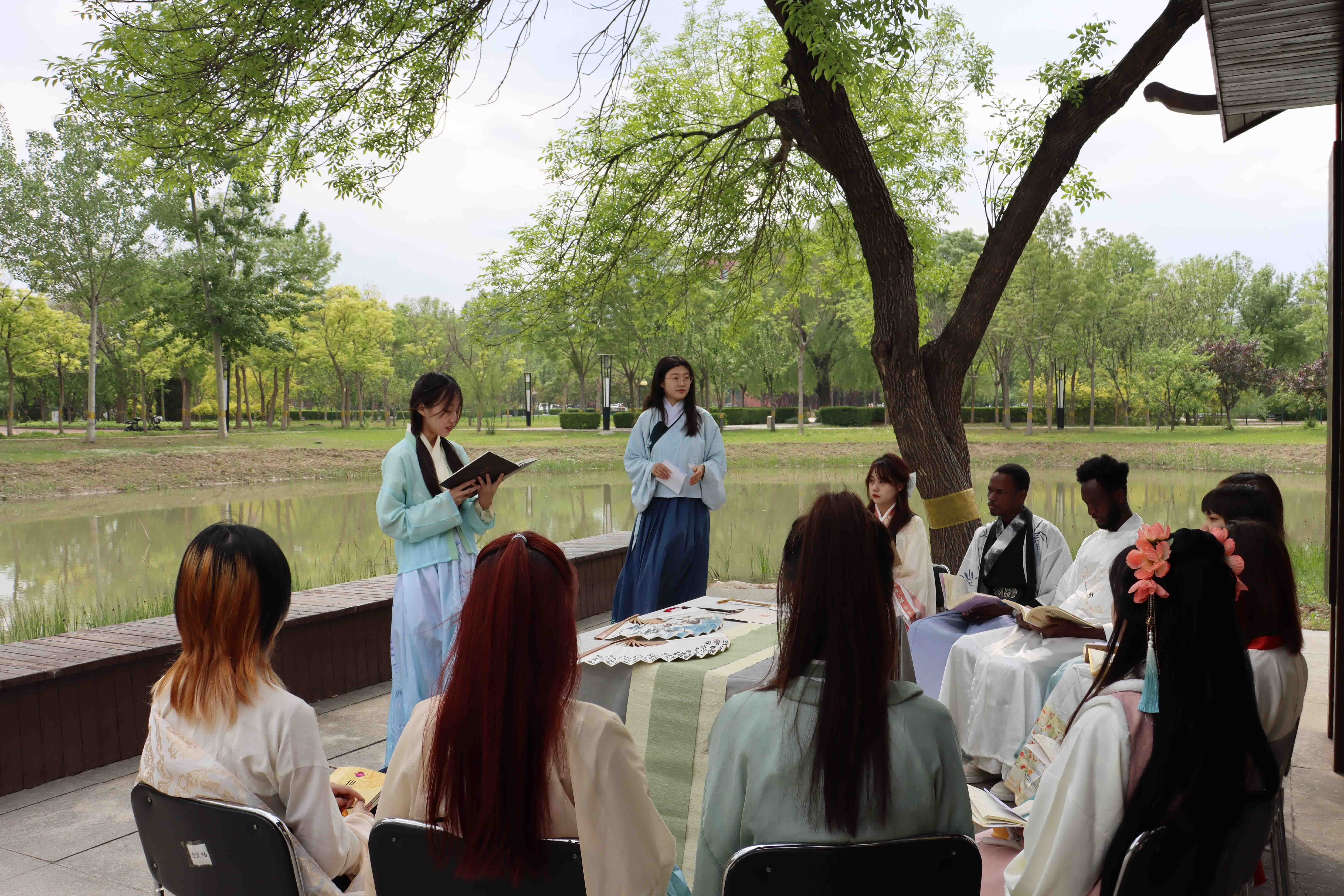 为深入贯彻落实党的二十大关于深化全民阅读活动的重要部署,进一步推动青年学生了解传统文化、学习传统文化,推进校园文化建设,在世界读书日来临之际,开云官方在线入口举办“国风新韵,阅见春天”春日读书会活动,中外学子身着汉服齐聚明德亭,阅读国学经典书目,提升文化底蕴。
