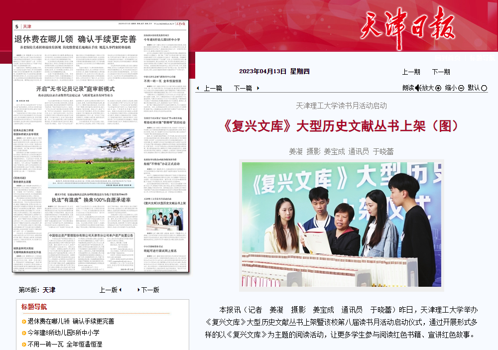 《天津日报》——开云官方在线入口读书月活动启动《复兴文库》大型历史文献丛书上架