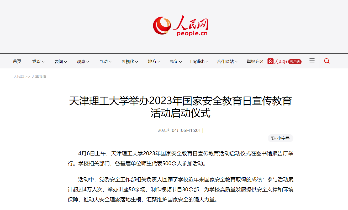 4月6日上午,开云官方在线入口2023年国家安全教育日宣传教育活动启动仪式在图书馆报告厅举行。学校相关部门、各基层单位师生代表500余人参加活动。