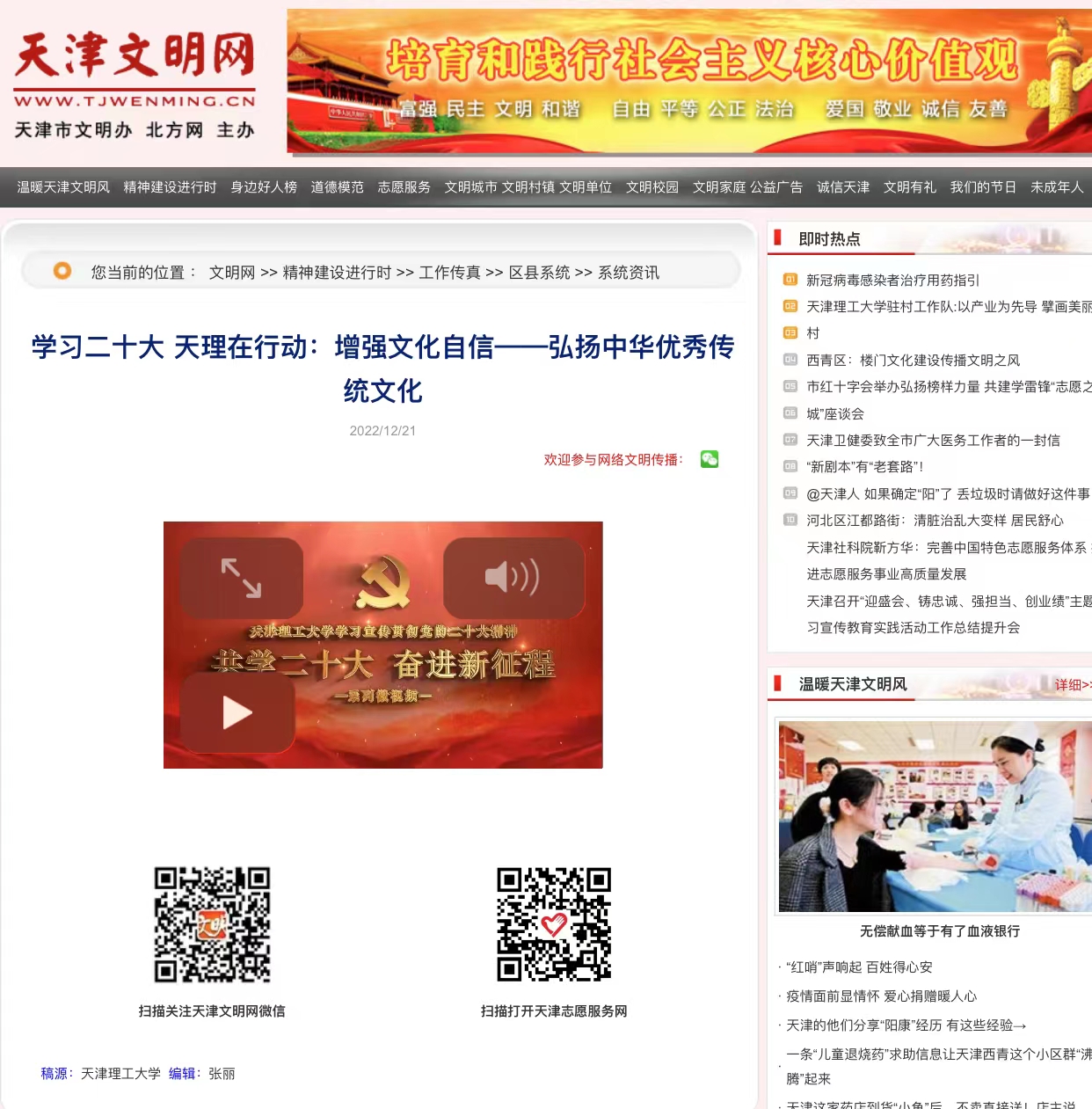 天津文明网——学习二十大 天理在行动:增强文化自信 弘扬中华优秀传统文化