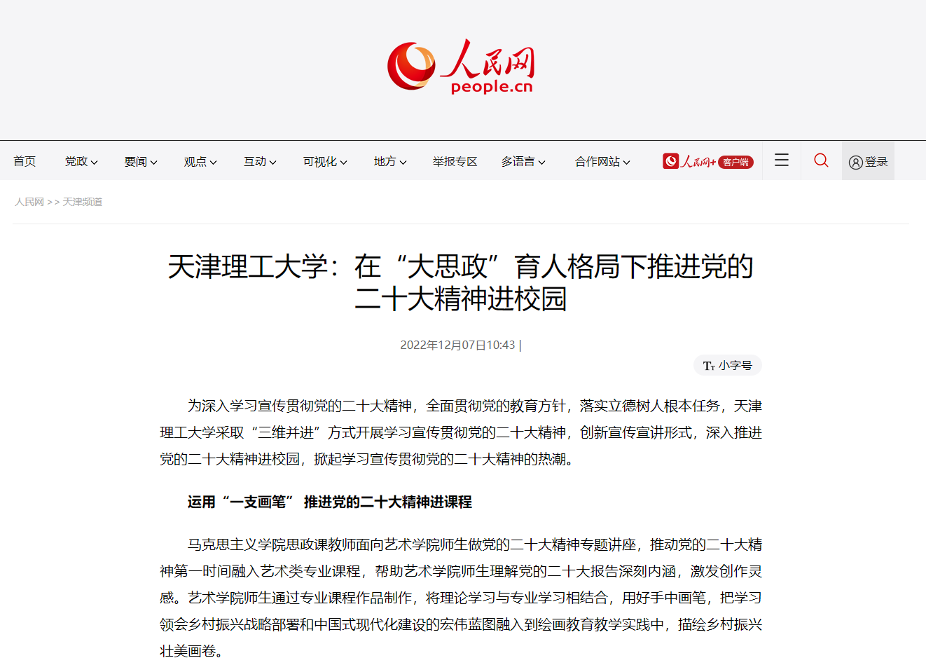 打造“两个专栏” 推进党的二十大精神进网络