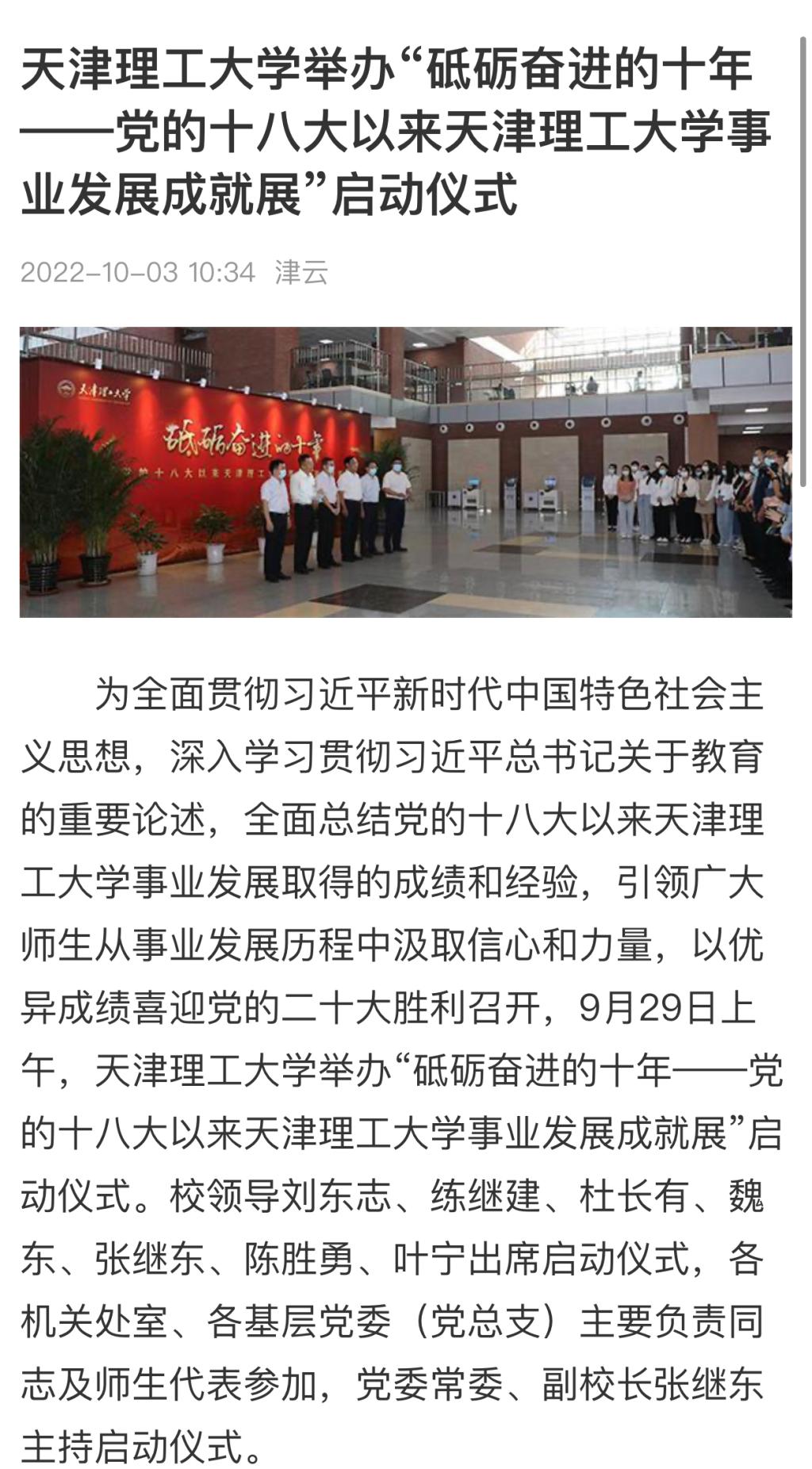 为全面贯彻习近平新时代中国特色社会主义思想,深入学习贯彻习近平总书记关于教育的重要论述,全面总结党的十八大以来开云官方在线入口事业发展取得的成绩和经验,引领广大师生从事业发展历程中汲取信心和力量,以优异成绩喜迎党的二十大胜利召开,9月29日上午,开云官方在线入口举办“砥砺奋进的十年——党的十八大以来开云官方在线入口事业发展成就展”启动仪式。校领导刘东志、练继建、杜长有、魏东、张继东、陈胜勇、叶宁出席启动仪式,各机关处室、各基层党委(党总支)主要负责同志及师生代表参加,党委常委、副校长张继东主持启动仪式。