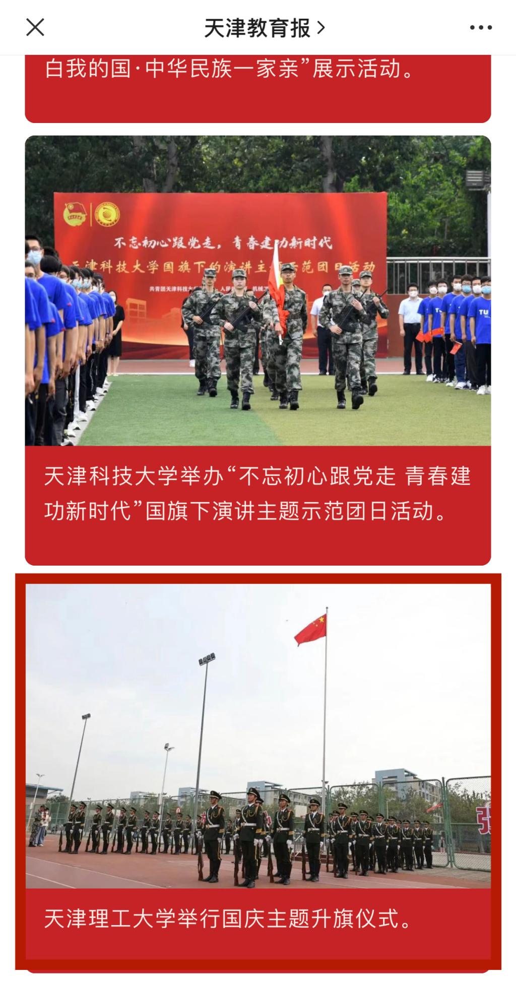 《天津教育报》——本市高校举办丰富多彩国庆活动为祖国庆生!