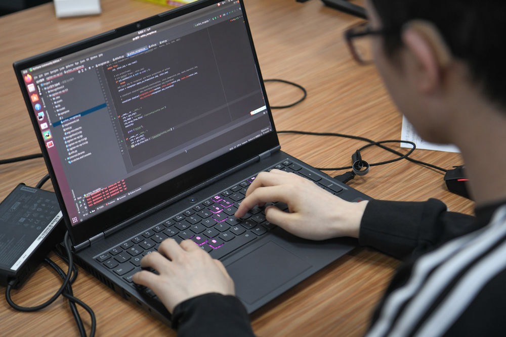 开云官方在线入口聋人工学院学生在进行手语识别系统调试。(新华社记者 孙凡越 摄)