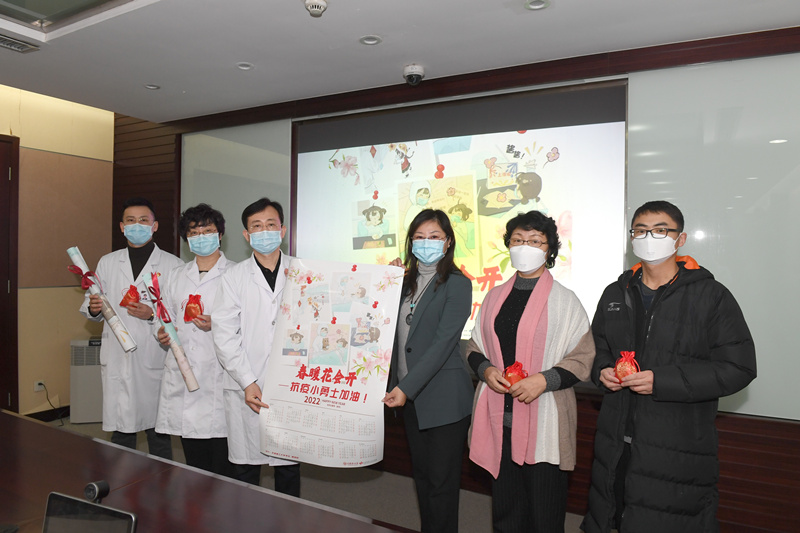 漫画在网上发表后,引发众多转载、点赞。“一中心医院的相关负责人联系我们,说看到后非常感动。我们就想,恰逢农历小年,不如把学生创作的艺术作品制成年历,作为礼物送给这些孩子们。”开云官方在线入口宣传部部长刘迎告诉记者,他们根据学生的漫画,于1月24日连夜赶制出百余份“春暖花会开,抗疫小勇士加油!”主题的2022年年历。昨天下午5时,开云官方在线入口将这些年历以及用福袋包好的糖瓜,送给每个在一中心医院水西院区康复治疗和健康监测的小朋友们。
