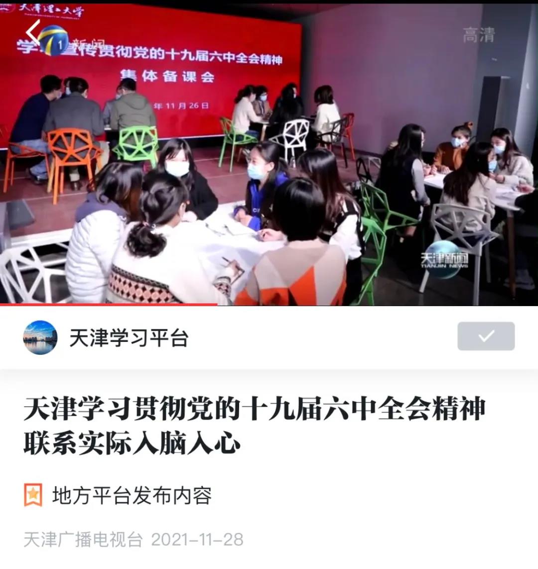 日前,学习强国、天津电视台《天津新闻》栏目报道了我校由思政课教师、青马工程学员、学科带头人组成的党的十九届六中全会师生宣讲团集体备课的情况。天津市习近平新时代中国特色社会主义思想讲师团成员、马克思主义学院副教授晋利珍,电气工程与自动化学院博士生导师周雪松,马克思主义学院杨凡接受采访,报道如下: