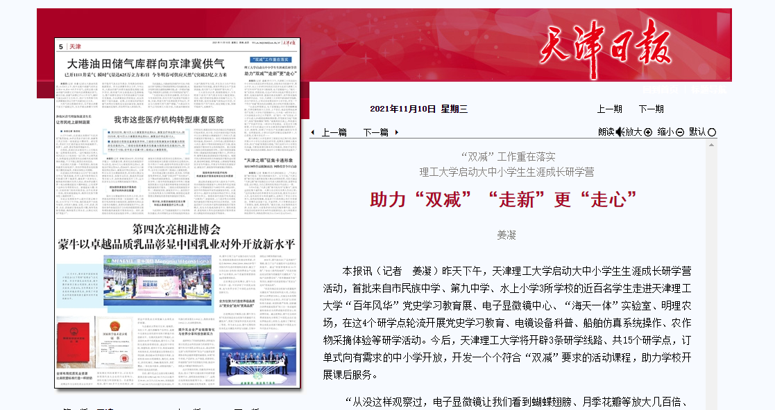 “从没这样观察过,电子显微镜让我们看到蝴蝶翅膀、月季花瓣等放大几百倍、上千倍后,竟会变得如此神奇!”在理工大学电子显微镜中心,九中高一4班学生谷士川兴奋地表示自己大开眼界。在“海天一体”实验室,中小学生进入270度船舶操纵模拟器,在驾驶室当起“驾驶员”,体验“船舶操纵”课程。“就像真的在海上,科技感太强了!”民族中学高一1班学生李佳蒙说。在党史学习教育展,中学生们通过大学生志愿者的讲解和观看图片、文字、视频等,回顾了中国共产党波澜壮阔的百年历程。在明理农场,小学生们边听讲解边采摘青萝卜、大白菜等,忙得不亦乐乎……