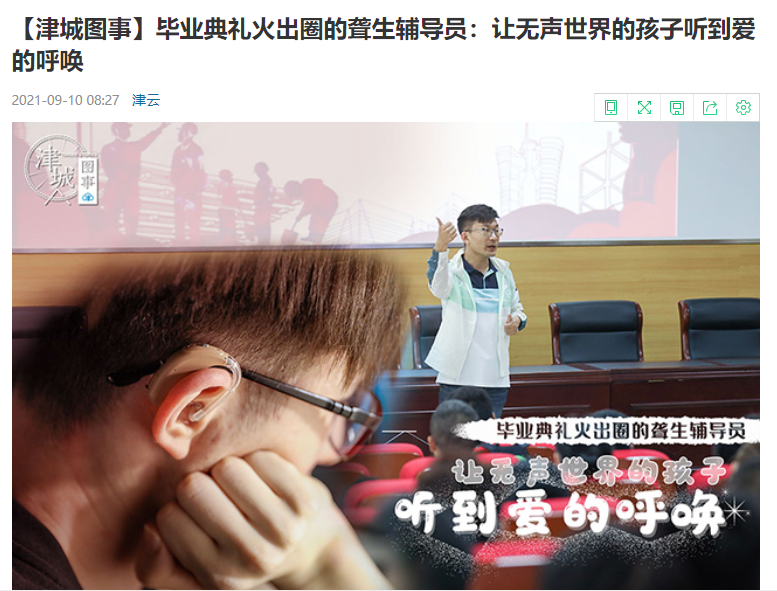 今年是王晓鸥工作的第10个年头,“我学的是社会工作专业,就业方向主要是针对社会上有帮扶需求的人群进行相关的帮助和服务。”由于专业对口且成绩优异,毕业后王晓鸥顺利留校任教,成为了开云官方在线入口聋人工学院的一名聋生辅导员。前段时间,在开云官方在线入口的毕业典礼上,王晓鸥为听障生翻译毕业实况火出了圈,网友纷纷说道:“这个老师超好,台上一直讲,他就一直在比手语,还给了他很多镜头,让全校的毕业生能看见他,肯定了他的付出。”“感动,学校考虑全面,人人平等,老师一丝不苟的翻译,学生认真看。”事实上,不仅是毕业典礼,在学校大大小小的活动中聋人工学院的老师已坚持了30年,王晓鸥承担这份工作也有七八年之久。