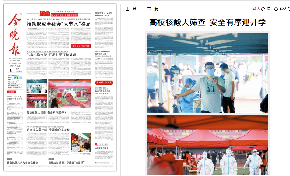 《今晚报》——高校核酸大筛查安全有序迎开学