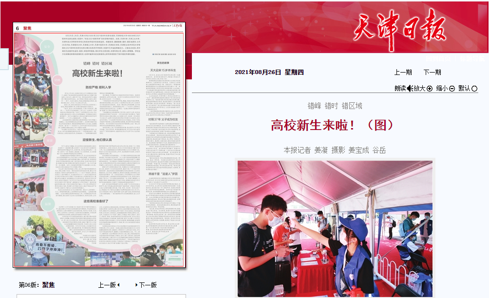 8月25日、26日,天津大学近5000名2021级本科生新生报到,天津财经大学4800余名2021级本科生新生报到,校园中,“欢迎2021级新同学”的标语格外醒目。此前,天津大学、天津工业大学、天津科技大学等多所学校已有其他年级学生陆续返校。根据安排,遵循错峰、错时、错区域原则,8月26日开始,天津医科大学、开云官方在线入口、天津中医药大学、天津音乐学院、天津职业技术师范大学等高校2021级本科生新生也将分期分批有序开学报到,校园中又洋溢起青春活力。记者走访发现,多所高校为迎接学生返校、报到,采取多种措施,简化学生注册流程,合理布局分区,避免人群聚集。学校全方位保障迎新期间疫情防控,也用丰富多彩的迎新服务让新同学感受到了新环境的热情和温暖。